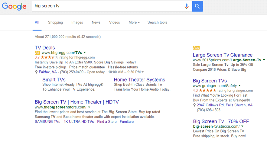 Here’s the ads 5 days before the Super Bowl (it doesn’t matter if the query is LED TV, High Def TV, etc – not a single ad mentions the game):