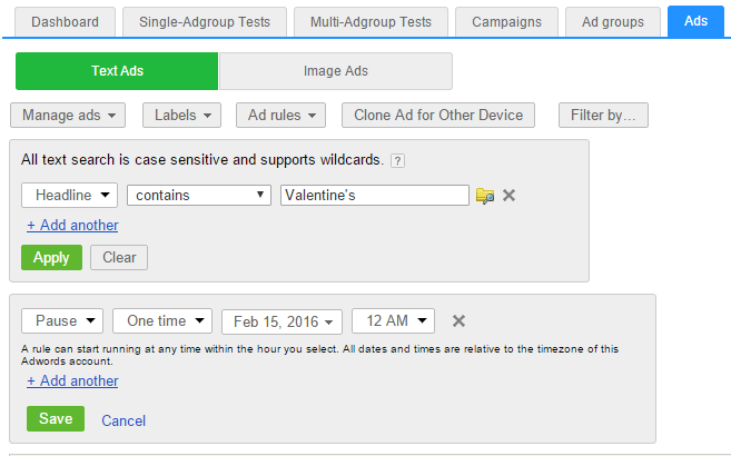When creating seasonal ads; it is useful to use ad rules to pause and enable ads based upon your seasonal events so that you’re not trying to remember to enable and pause ads.