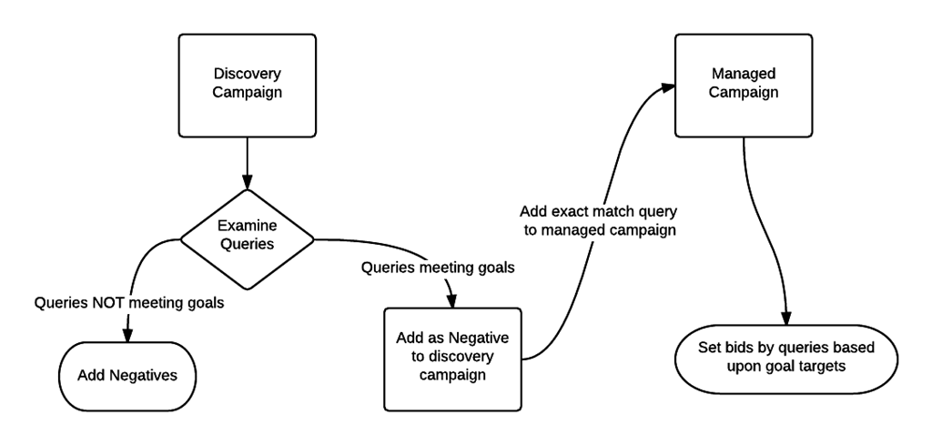 This structure forces your top words into highly managed campaigns with high budgets, and allows you to keep other words you want to show for; but aren’t your top keywords; with a lower budget in your discovery campaign.