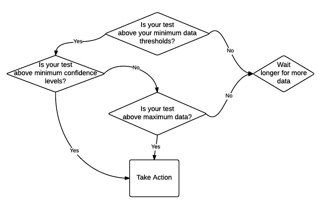 If you only define minimum data and minimum confidence factors, your tests can run for years and you will miss an opportunity to further increase your conversions.