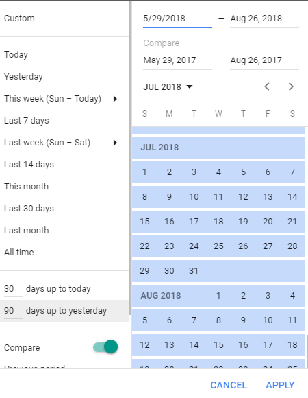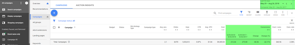 A common tactic for analyzing your Google Ads data is to do a year over year comparison of the data (or a timeframe vs a timeframe). This is especially true when you do a reorganization, and something seems off in your data.