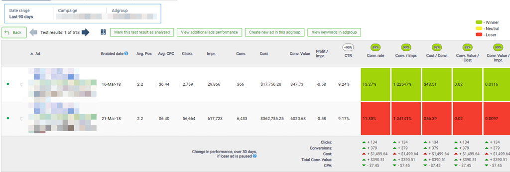 If you’d like to automate this part of Google AdWords campaign management and easily choose winner and loser ads; take a look at Adalysis.com.