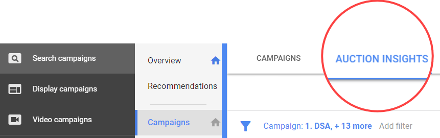 Finding your auction insights data is easy, just go to your campaigns, and click over to auction insights.