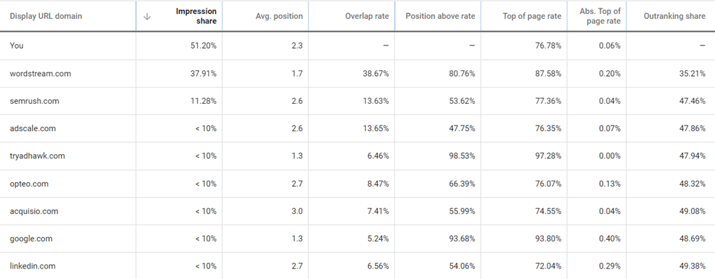 Auction insight data is comprised of a few primary columns:
