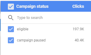 If you have paused campaigns that you want to include in your data comparison, we’ve added a status selector so you can see paused, active, or both campaign statues.