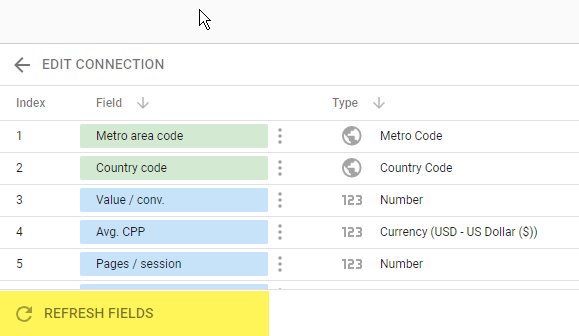 If you add the new template and you see the new metrics (or any metrics) as broken, then you need to refresh the data fields for your source. This is very easy to do as you can go to your source and click the refresh button and confirm the changes.