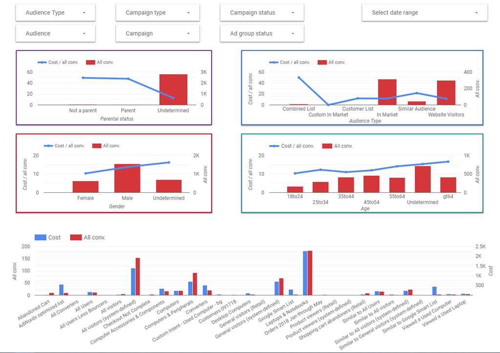 Analyzing your audience data within Google Ads can be difficult, especially as it crosses over campaigns and ad groups. To make this data easier to visualize and understand, we’ve created a free Google Data Studio report that makes it easier to visualize your audience data.