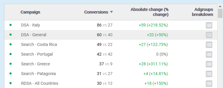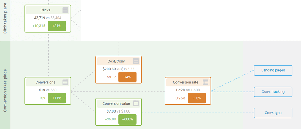 The first step is to isolate where the conversion changes are occurring. This can range from a single ad group to multiple campaigns. Of course, the changes could be positive or negative.