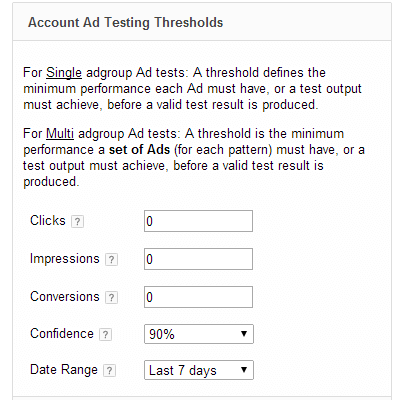 Any ad test should have a minimum amount of viable data, such as a minimum amount of time, clicks, impressions, and conversions. These may vary depending on the type of metrics you are using for ad testing and the type of keywords you are testing (such as brand vs product).