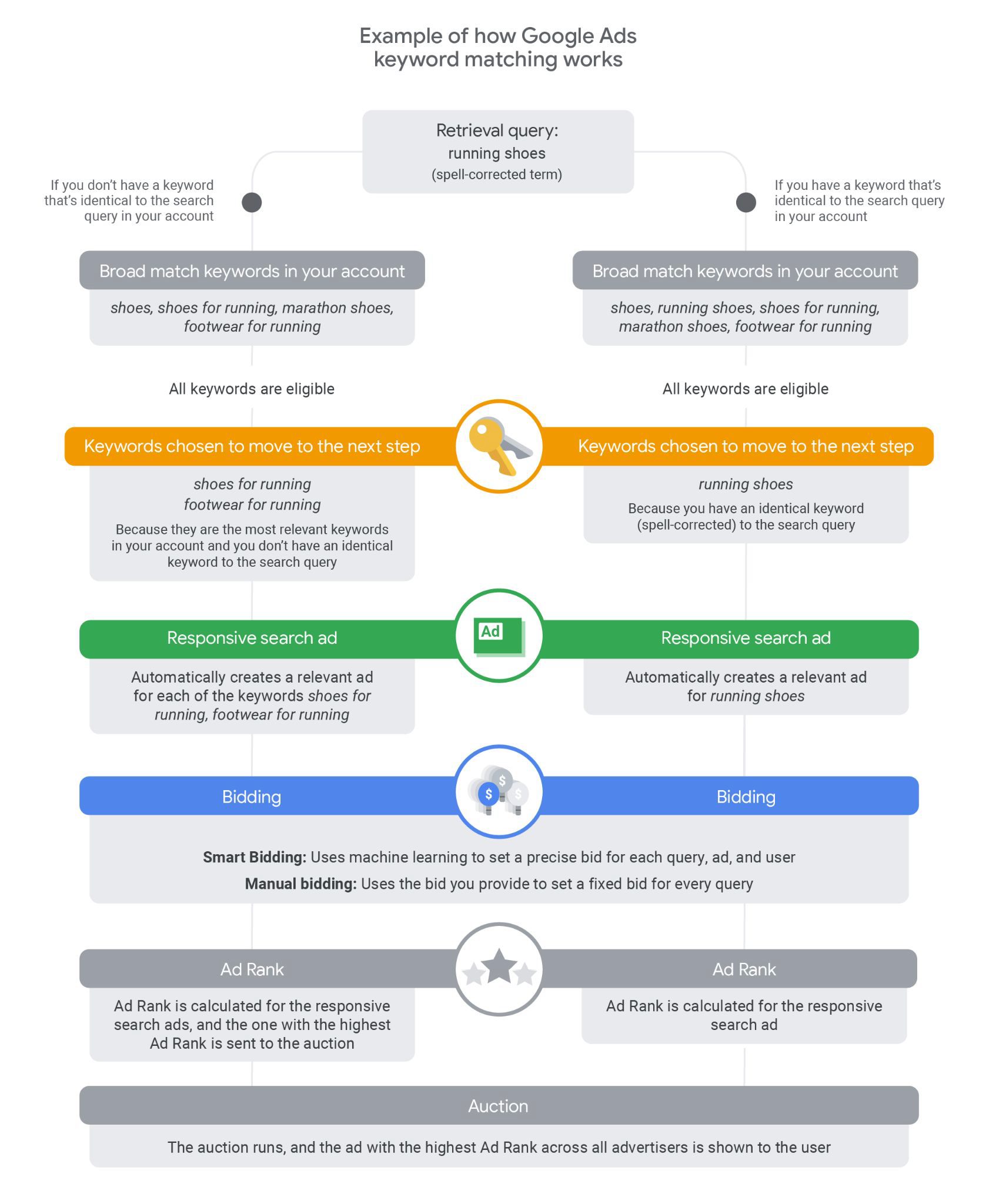 In Google’s example, of course, they use broad match. The same flow will occur regardless of your match type.