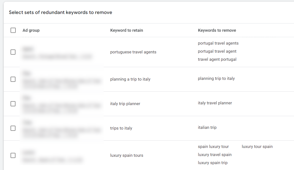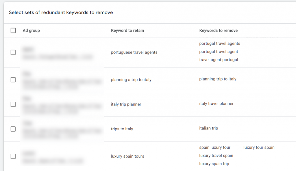 If you remove redundant keywords, you are telling Google they can serve multiple ad groups for the same search term, often to the detriment of your account’s performance.
